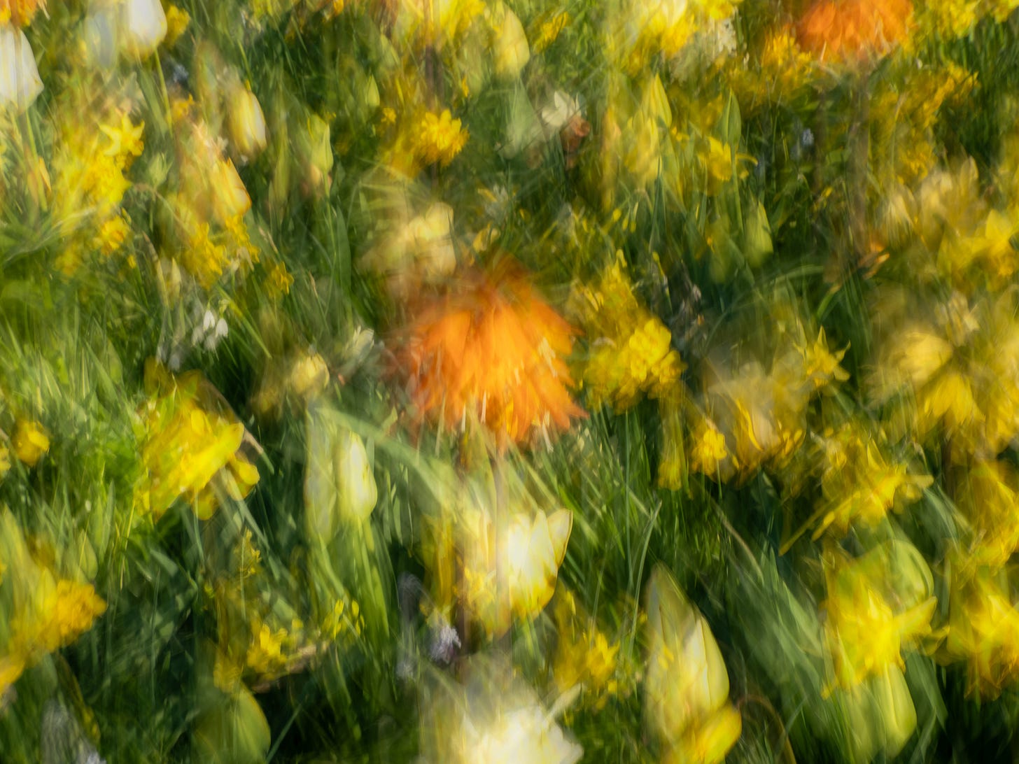 I pulled my camera out again and shifted my approach—not a single flower, not a single bed of blooms, but all of it. Photographers call it Intentional Camera Movement—a carefully blurred photo where nothing is crystal clear, but the feeling of the moment is strong.